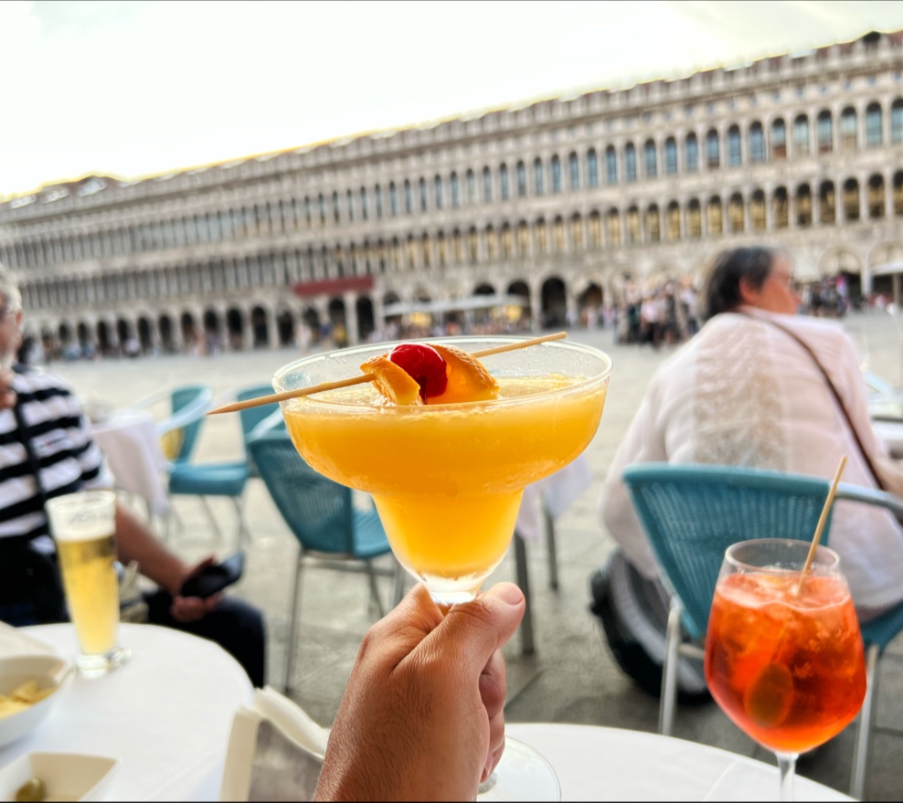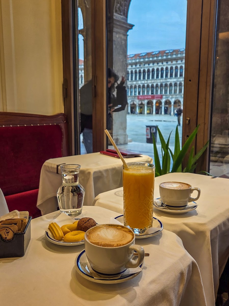 There’s probably no better place for a sweet breakfast at St. Mark’s Square in Venice. Delicious coffee, tasty croissants, friendly and elegantly dressed staff, a beautiful view of the square, and the perfect weather — simply dolce far niente! We highly recommend taking a moment to relax and enjoy this experience.