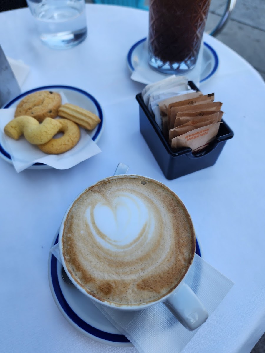 The place is amazing, with a stunning view right on San Marco Square — a truly iconic setting. The cappuccino costs €10, which might seem high, but honestly, prices in the entire area are similar. You're paying for the location, and it’s worth it for the experience. They even treated us to some cookies, which was a lovely touch. The staff were friendly and polite, which is why I honestly can’t understand some of the negative reviews. Sure, it's not the kind of place you'd go for coffee every day, but if you're visiting Venice and want to soak in the iconic view you can have a coffee here.